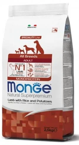 אוכל איכותי ומזין מבית Monge לבוגרי כלבים, עם דגש על עיכול, מערכת חיסון, פרווה בריאה ותמיכה במפרקי .